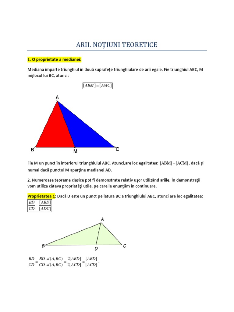 2. Numeroase teoreme clasice pot fi demonstrate relativ uor utiliznd ariile. n demonstraii
