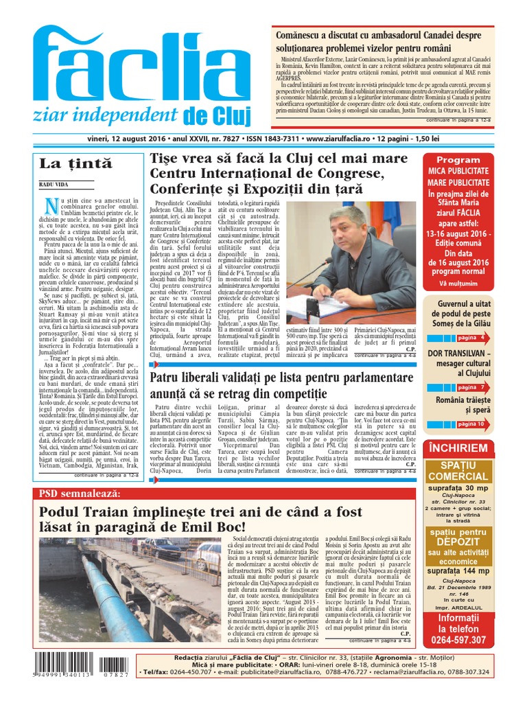 vineri, 12 august 2016 anul XXVII, nr. 7827 ISSN 1843-7311 [Link] 12 pagini - 1,50 lei