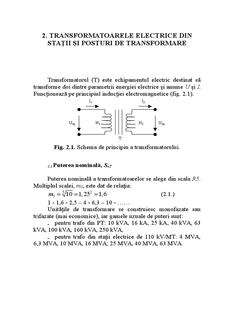 Puterea nominal a transformatoarelor se alege din scala R5.