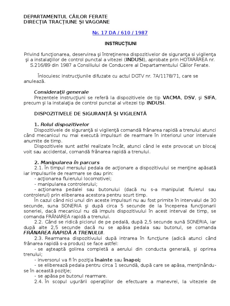 - Cnd mecanicul nu este avizat prin ordin de circulaie c instalaia INDUSI din