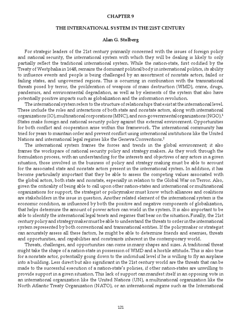 for the associated state and nonstate actors present in the international system. In addition, it has