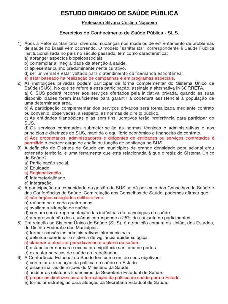 Exercícios de Conhecimento de Saúde Pública - SUS.