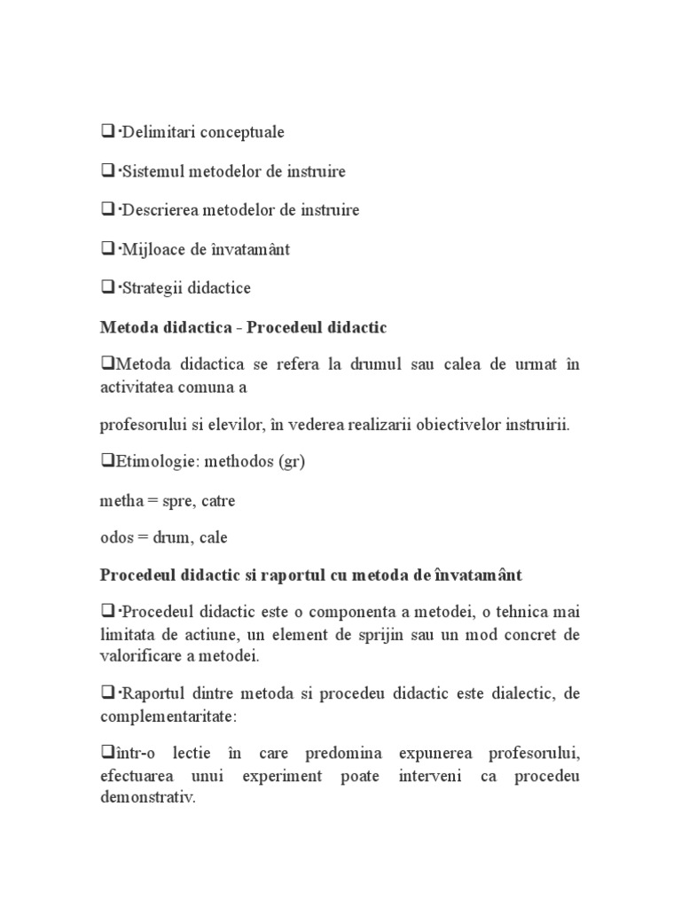 Descrierea metodelor de instruire