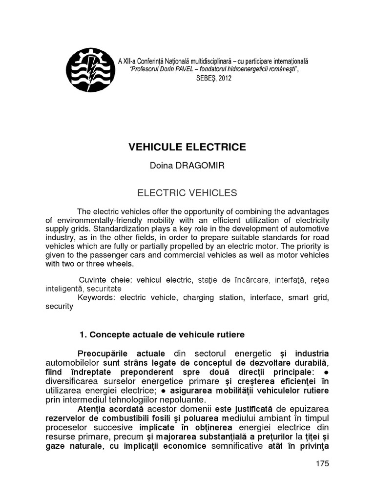 vehiculelor, stocarea energiei i infrastructura de ncrcare, care au facilitat elaborarea