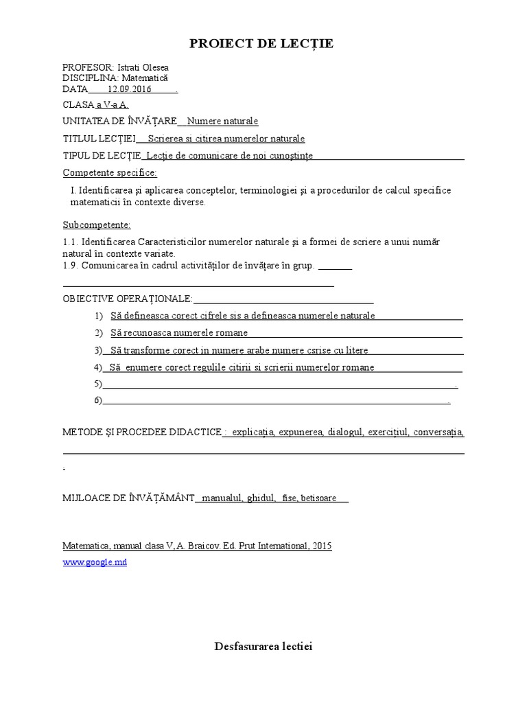 Matematica, manual clasa V, A. Braicov. Ed. Prut International, 2015