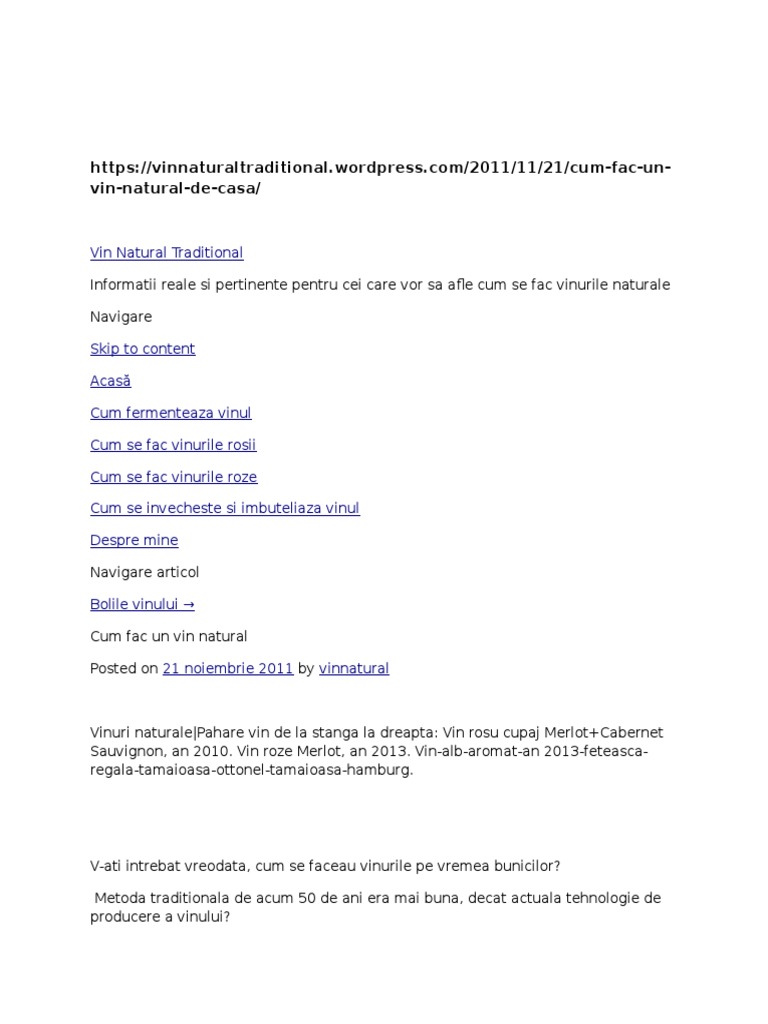 cum se obtine un vin natural, asa cum il facea bunicul meu, fara adaus suplimentar
