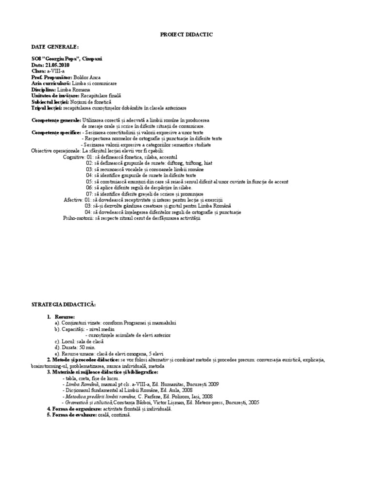 Competene generale: Utilizarea corect i adecvat a limbii romne n producerea