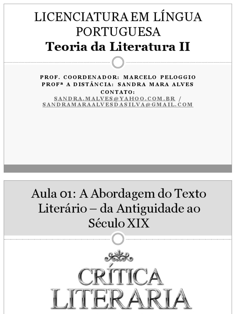 Aula 01: A Abordagem do Texto Literário – da Antiguidade ao Século XIX