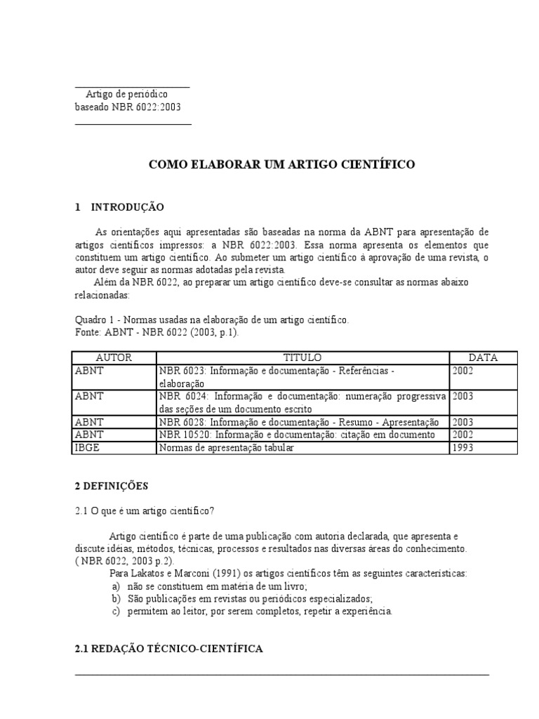 Fonte: ABNT - NBR 6022 (2003, p.1).