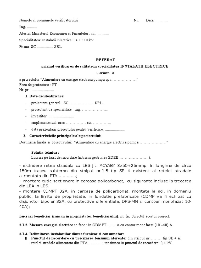 Memoriu tehnic.
