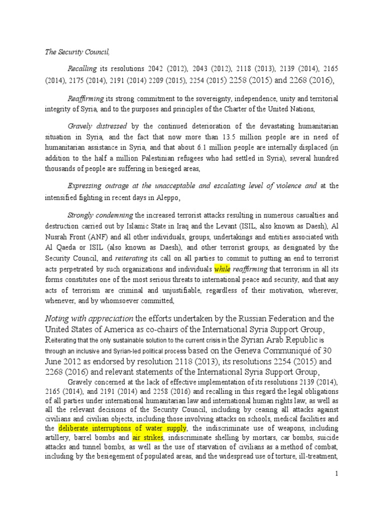 Syria of 6 October 2016 on normalizing the situation in Aleppo and requests the