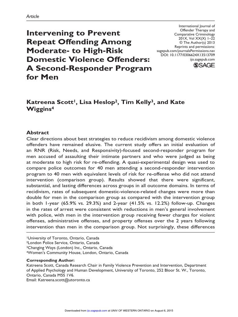 violence: A randomized field test of a second responder program. Journal of Experimental