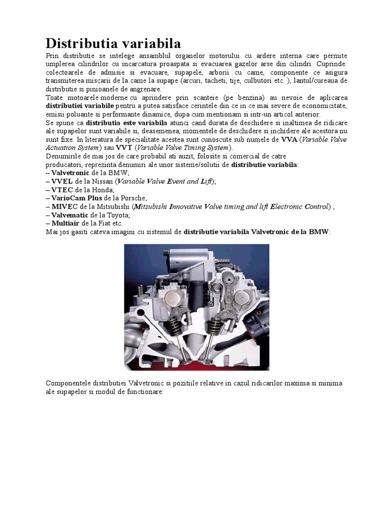 varierea continu a fazelor supapelor de admisie i evacuare, ntre o valoarea minim i maxim. Motorul