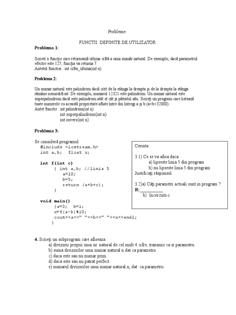 Cuplati toate functiile de mai sus intr-un program C/C++ functional.