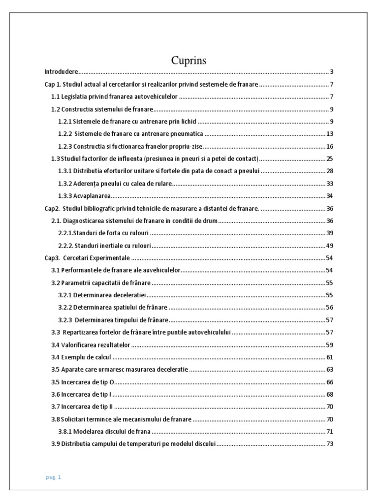 1.2 Constructia sistemului de franare ....................................................................................................... 9
