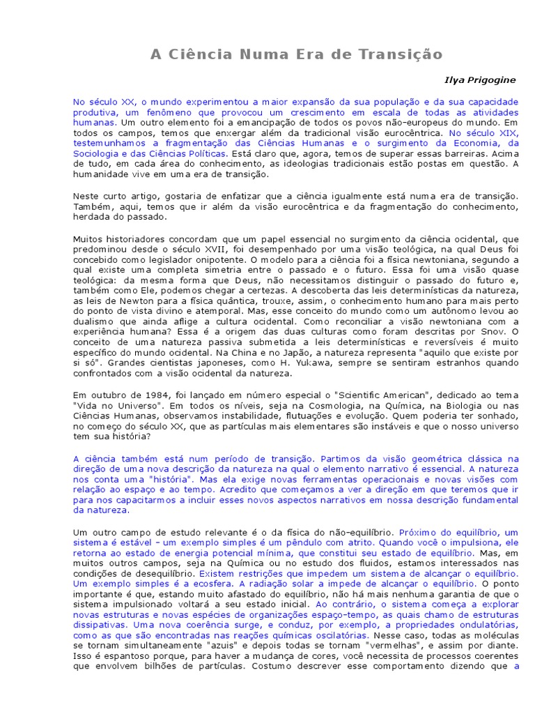 Neste curto artigo, gostaria de enfatizar que a cincia igualmente est numa era de transio.