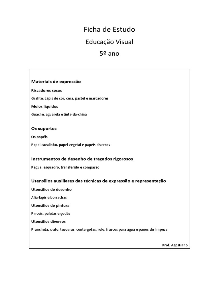 Prancheta, x-ato, tesouras, conta-gotas, rolo, frascos para gua e panos de limpeza
