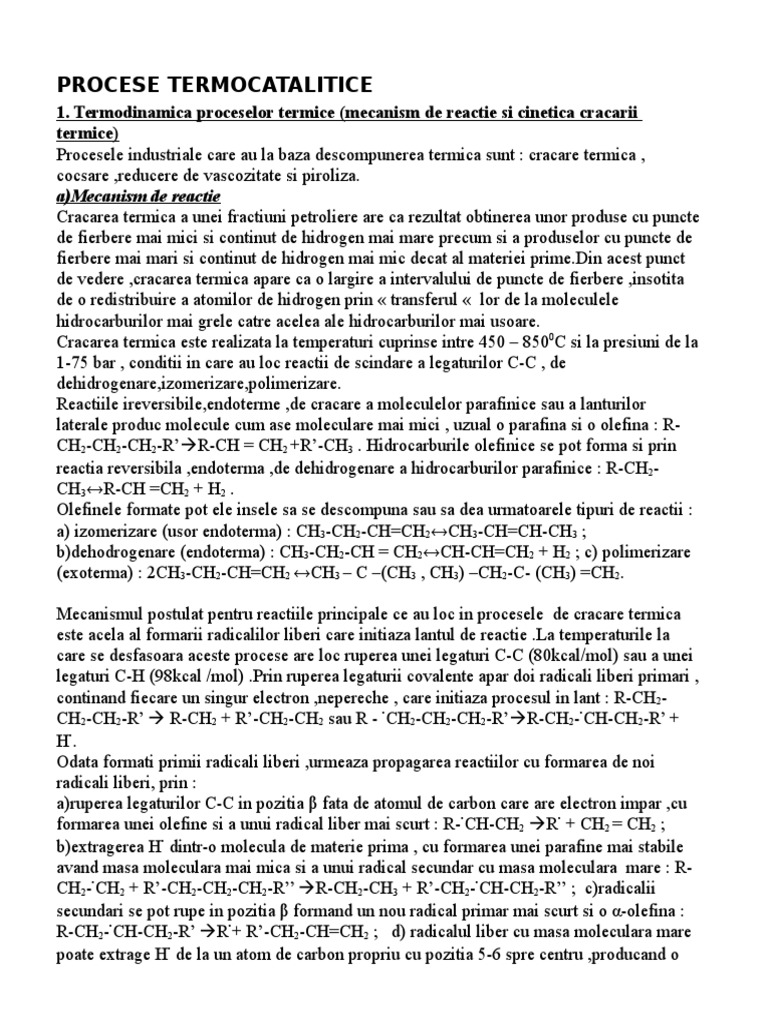 1. Termodinamica proceselor termice (mecanism de reactie si cinetica cracarii