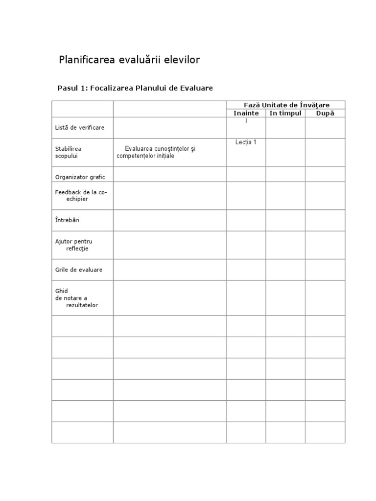 Planificarea evalurii elevilor