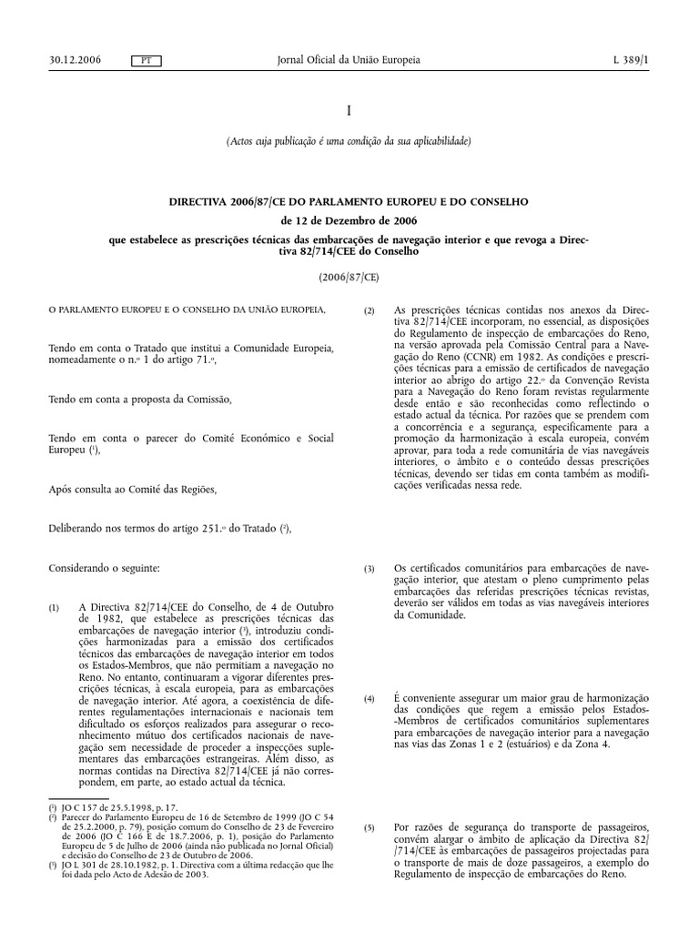 na verso aprovada pela Comisso Central para a Navegao do Reno (CCNR) em 1982. As condies e prescries tcnicas para a emisso de certificados de navegao
