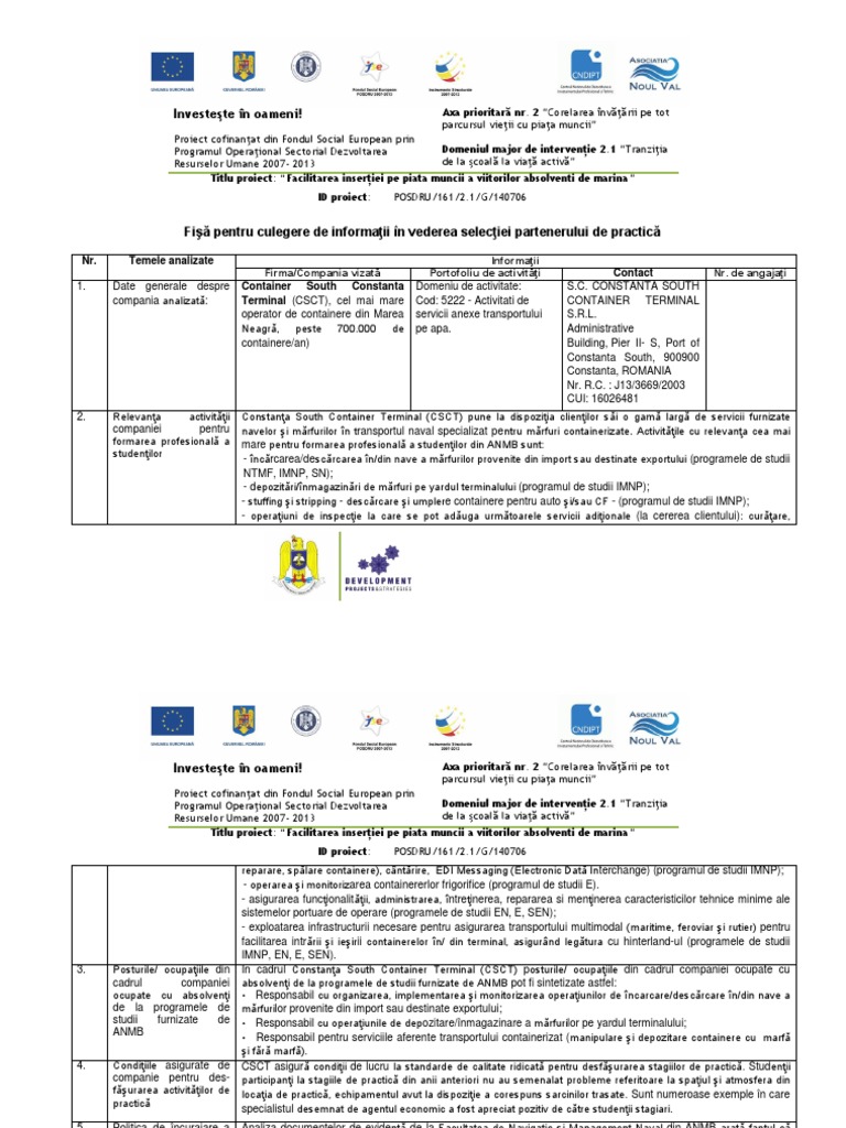 Titlu proiect: Facilitarea inseriei pe piata muncii a viitorilor absolventi de marina