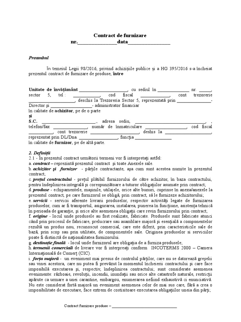 Contract furnizare produse ________________________________