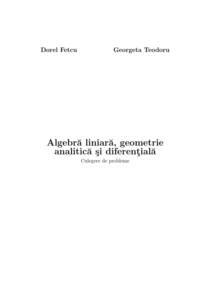 insusirii materiei disciplinei de Algebra liniara, geometrie analitica si diferentiala, va fi un ndreptar util studentilor din anul I ai facultatilor cu profil tehnic,