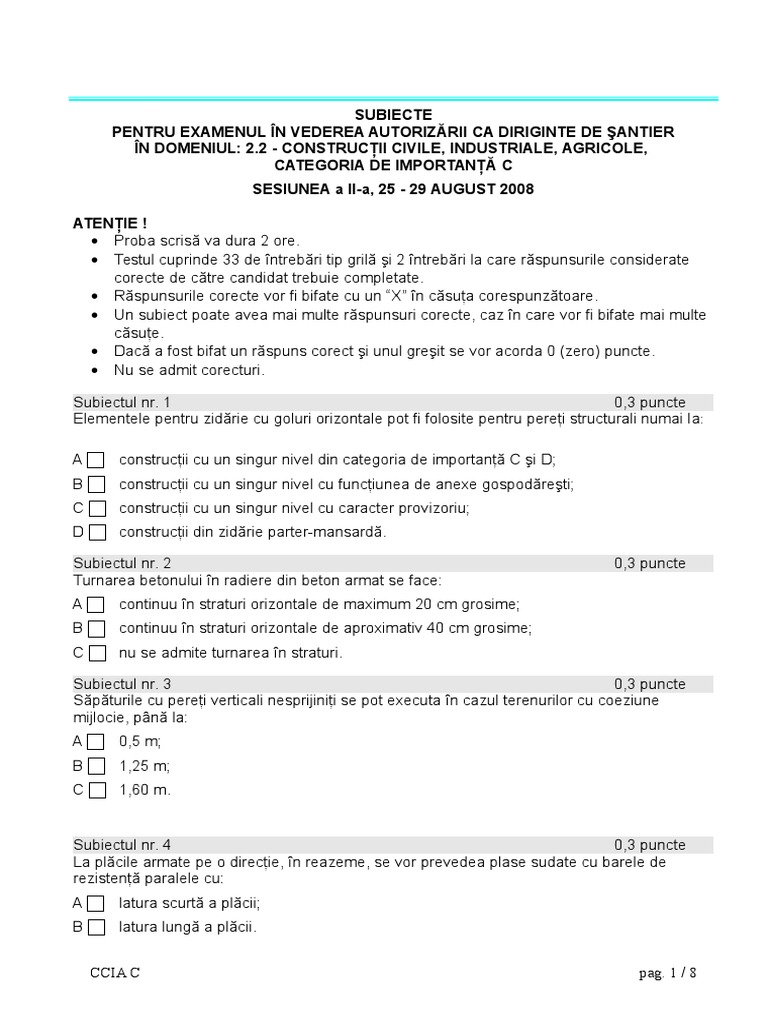 Un subiect poate avea mai multe rspunsuri corecte, caz n care vor fi bifate mai multe