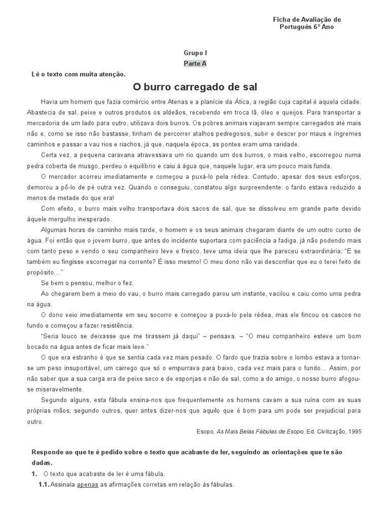 1. O texto que acabaste de ler uma fbula.