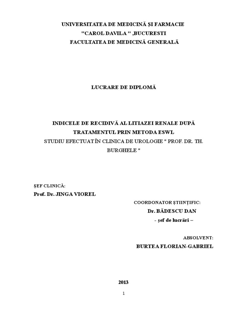 Bibliografie recent despre recidiva litiazei renale dup ESWL... 44