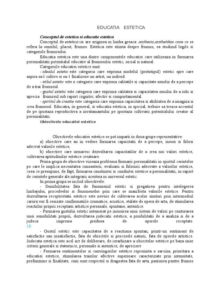 - Sensibilitatea fata de fenomenul estetic si pregatirea pentru intelegerea