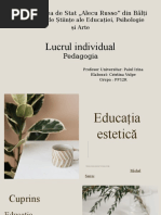 - Formarea gustului estetic intemeiat pe insusirea unui sistem de valori pe conturarea