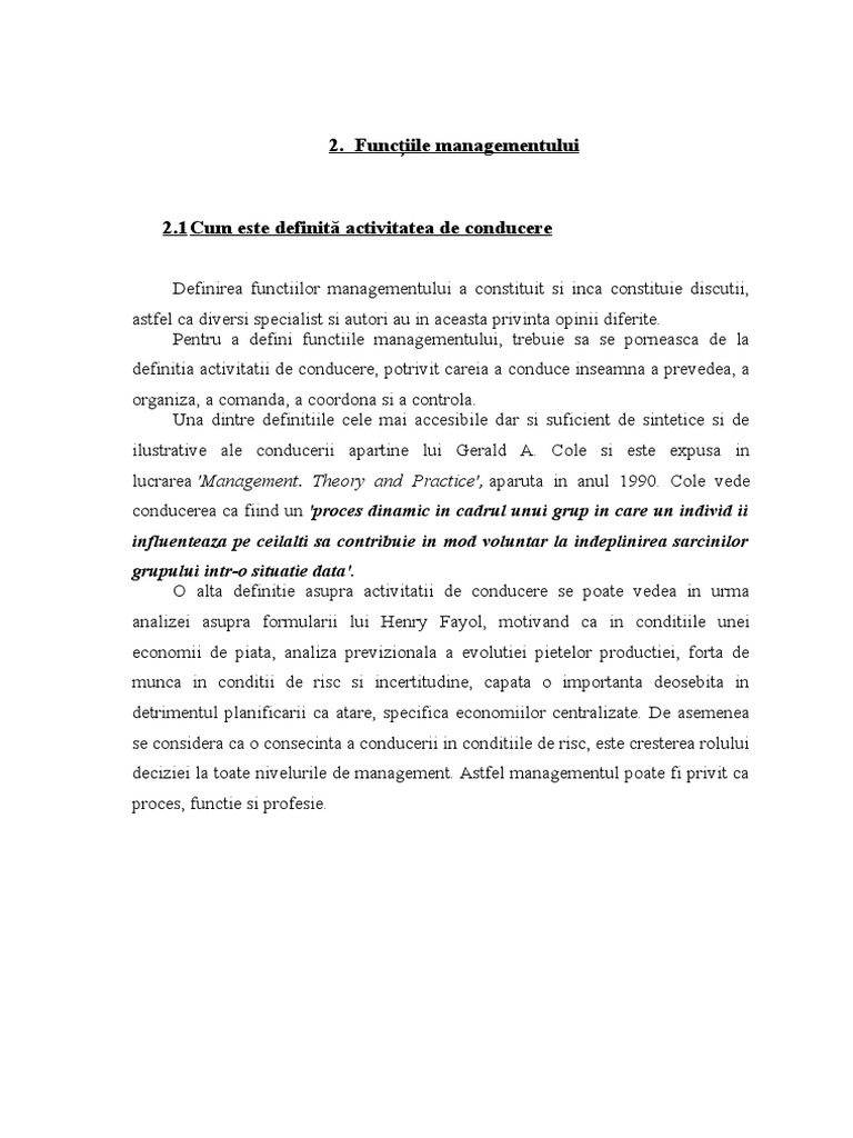 2.2 Funciile fundamentale ale managementului