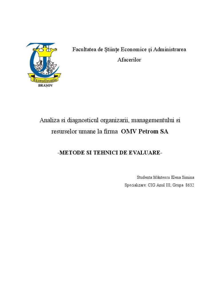 Analiza si diagnosticul resurselor umane si managementului.................................................
