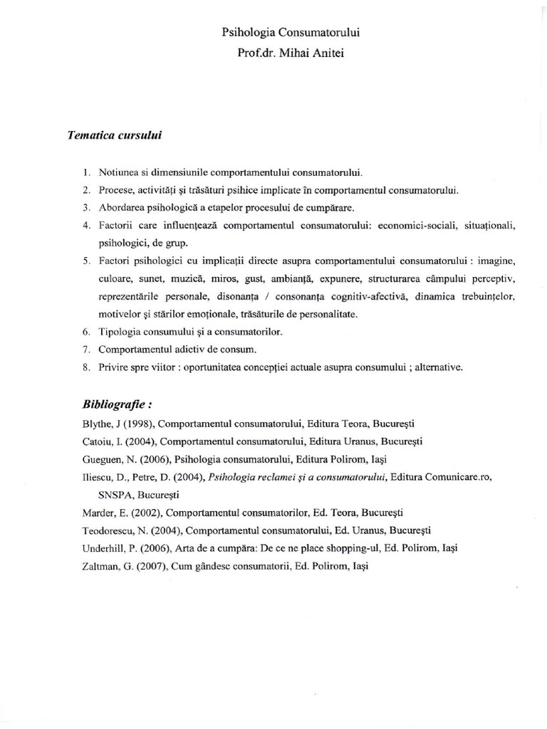 Catoiu, I. (2004), Comportamentul consumatorului, Editura Uranus, Bucuresti