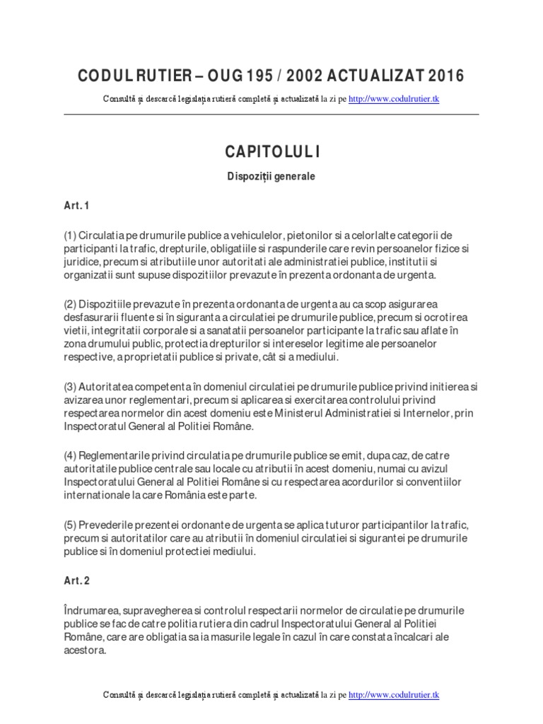 Noul Cod Rutier Oug 195 2002 Actualizat 2016