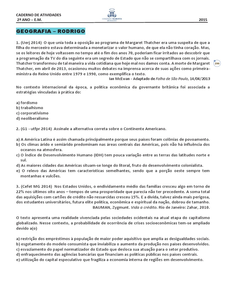 1. (Uerj 2014) O que unia toda a oposio ao programa de Margaret Thatcher era uma suspeita de que a