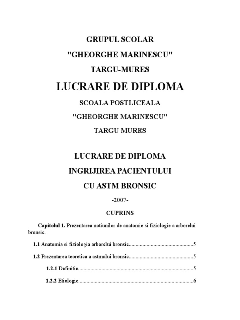1.2 Prezentarea teoretica a astmului bronsic...............................................5