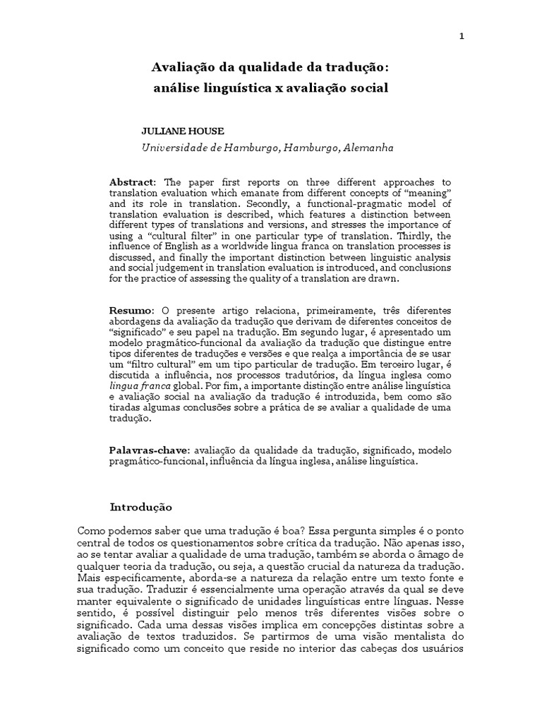 Palavras-chave: avaliao da qualidade da traduo, significado, modelo
