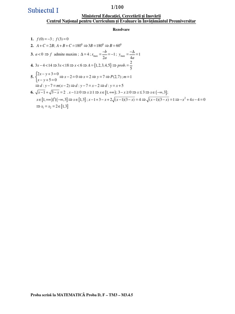 4. Notm 3x = t , t > 0 . Ecuaia devine 9t 2 6t + 1 = 0 ( 3t 1) = 0 t = 31 ; S = {1} .