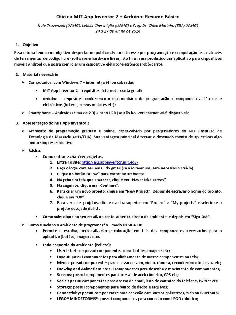 Essa oficina tem como objetivo despertar no pblico-alvo o interesse por programao e computao fsica atravs