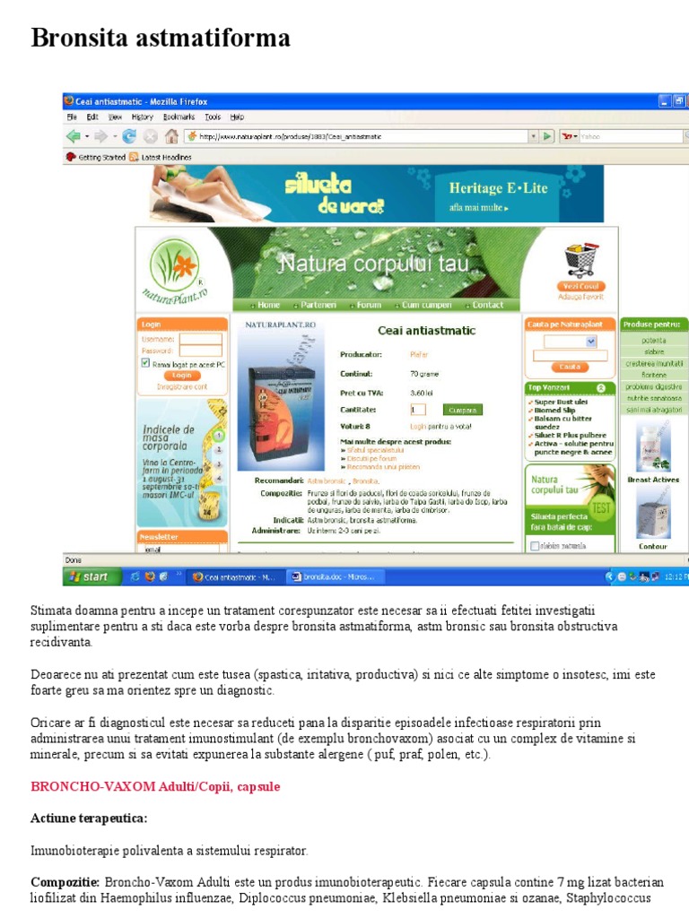 starilor de cronicitate. Broncho-Vaxom este in special recomandat ca terapie adjuvanta in: bronsite acute si cronice;