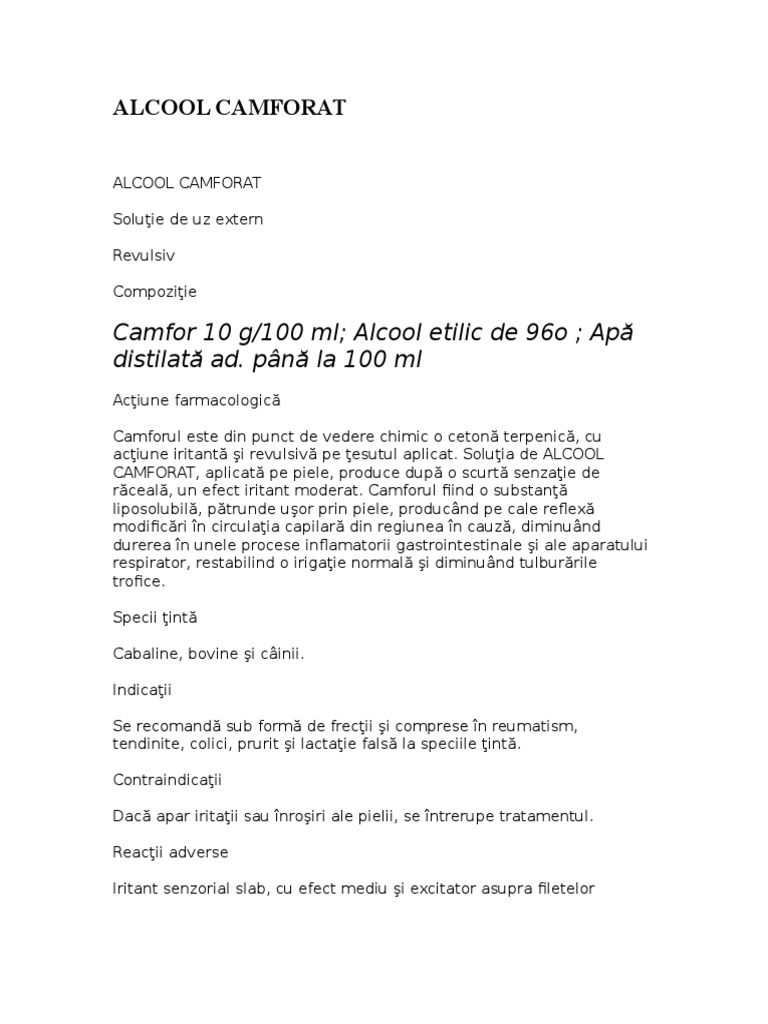 Camfor 10 g/100 ml; Alcool etilic de 96o ; Ap