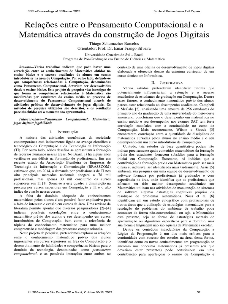 T. S. Barcelos and I. F. Silveira, Pensamento Computacional e