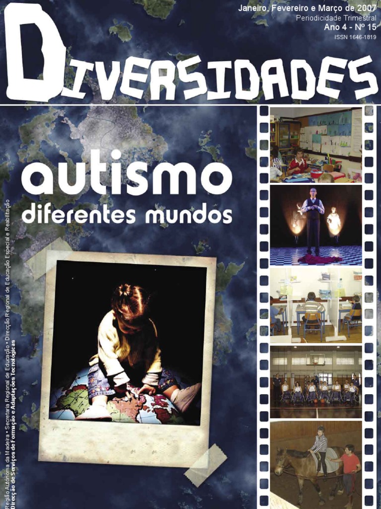 No presente número, a Revista Diversidades contempla a temática do Autismo como elemento de reflexão. Esta problemática, apontada pela literatura especiali- zada como uma desordem neurobiológica do desenvolvi- mento, ao caracterizar-se por dificuldades em várias áreas, nomeadamente: comunicação, interacção social, funciona- mento cognitivo, processamento sensorial e comportamento, requer um trabalho de intervenção sistemático e especializa- do. Num passado recente, à semelhança do que aconteceu em Portugal Continental, a Região Autónoma iniciou um novo programa de intervenção – o Modelo TEACCH – na tentativa de uma resposta inovadora às crianças com perturbações do espectro autista. Apresentamos as opiniões das pessoas mais directamente ligadas a este programa, passado um ano e meio sobre o início da experiência. Para além disso, deixamos aos nossos leitores alguns des- taques de actividades realizadas em diferentes unidades orgâ- nicas da DREER nos últimos meses. Por último, e sem esquecer os desafios que o Ano Europeu da Igualdade de Oportunidades que estamos a viver em 2007 nos lança, chamamos a atenção para duas grandes iniciativas: