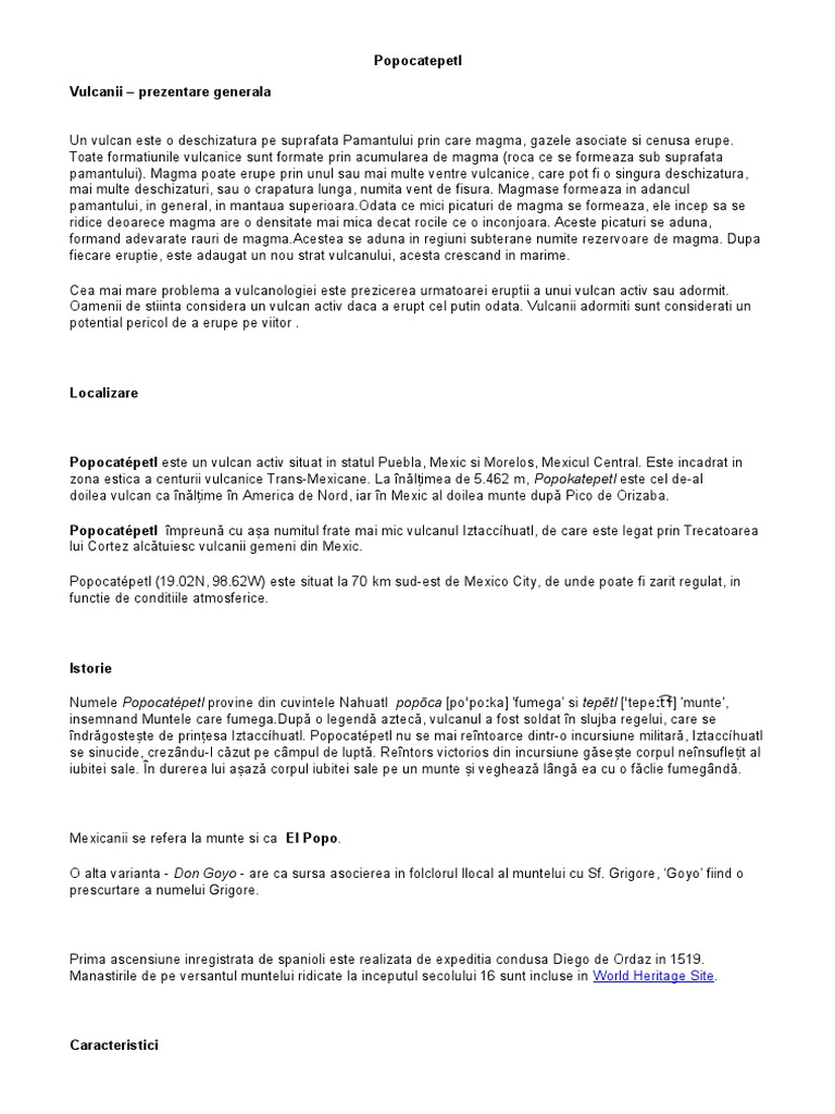 insemnand Muntele care [Link] o legend aztec, vulcanul a fost soldat n slujba regelui, care se