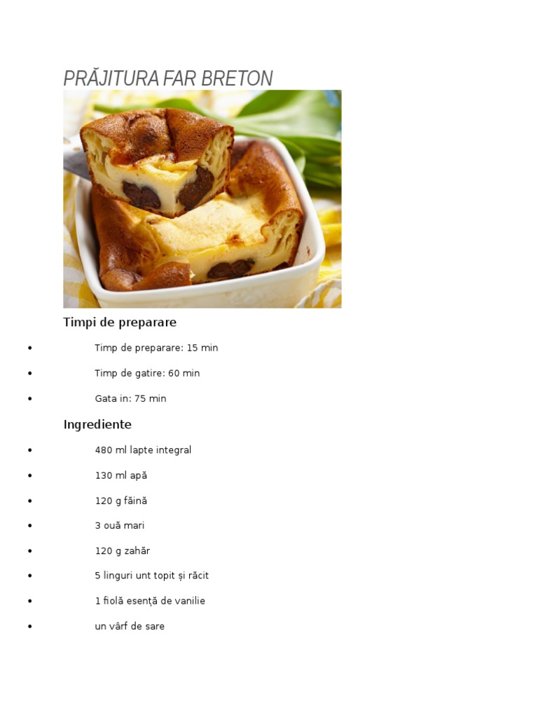 O prjitur de cas cu o textur cremoas ca de budinc, asemntoare celebrului Clafoutis, Far Breton e