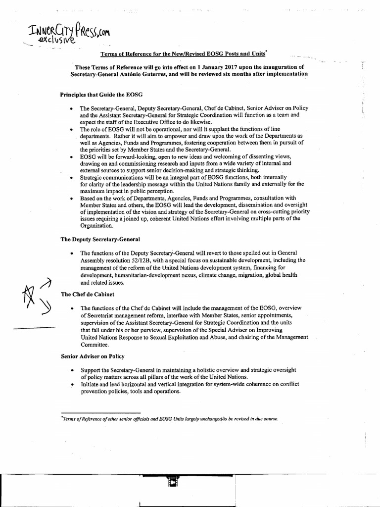 Terms ofReference ofother senior officials and EOSG Units largely unchanged/to be revised in due course.