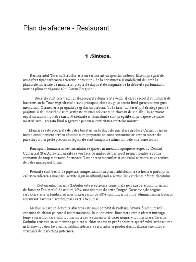Restaurantul Taverna Sarbului este o societate comerciala pe baza de actiuni,in sistem