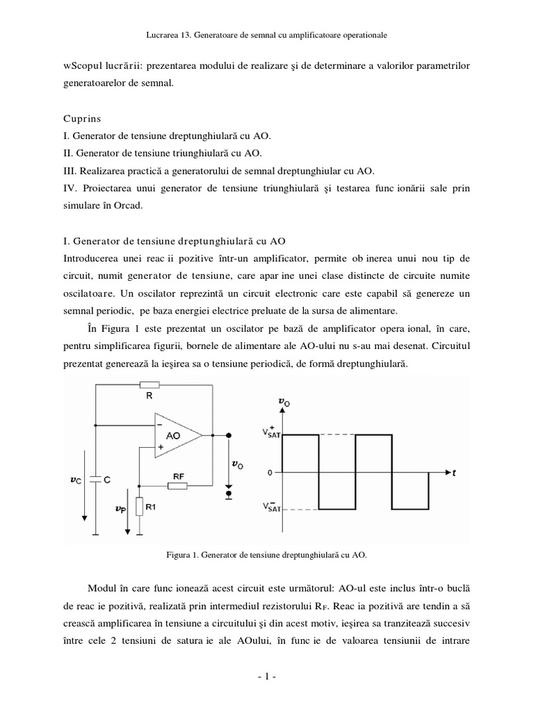 Lucrarea 13. Generatoare de semnal cu amplificatoare operationale